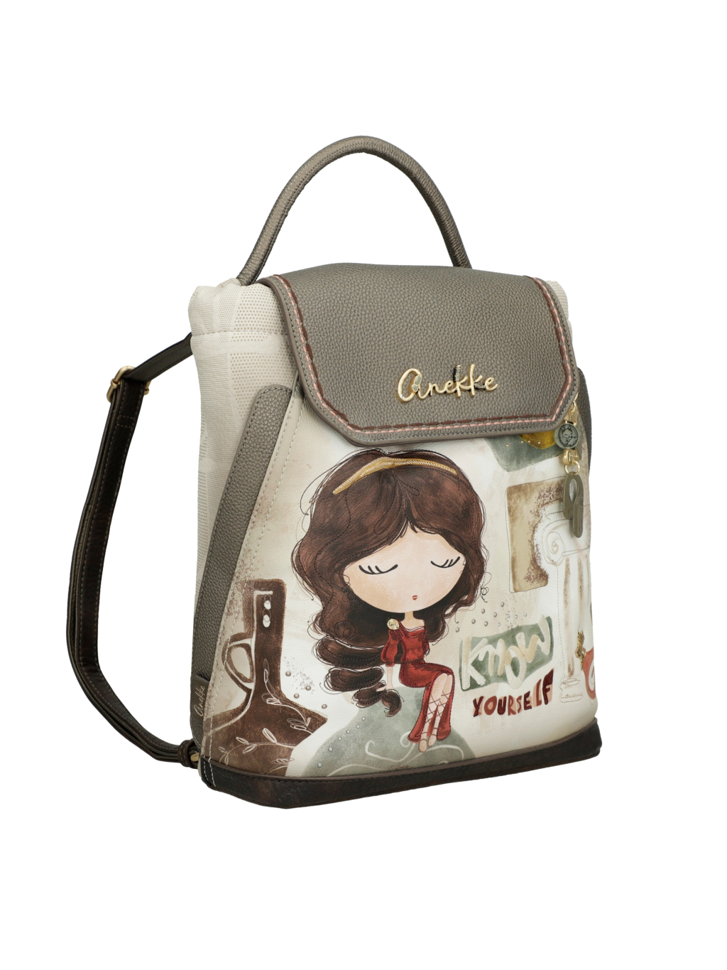 Objevte kouzlo elegance s batohem Anekke Muse, který v sobě spojuje styl, jemnost i praktičnost. Tento originální batoh v béžovošedivých a hnědých tónech působí sofistikovaně a nadčasově – skvěle se hodí jak do města, tak do práce či na cesty.