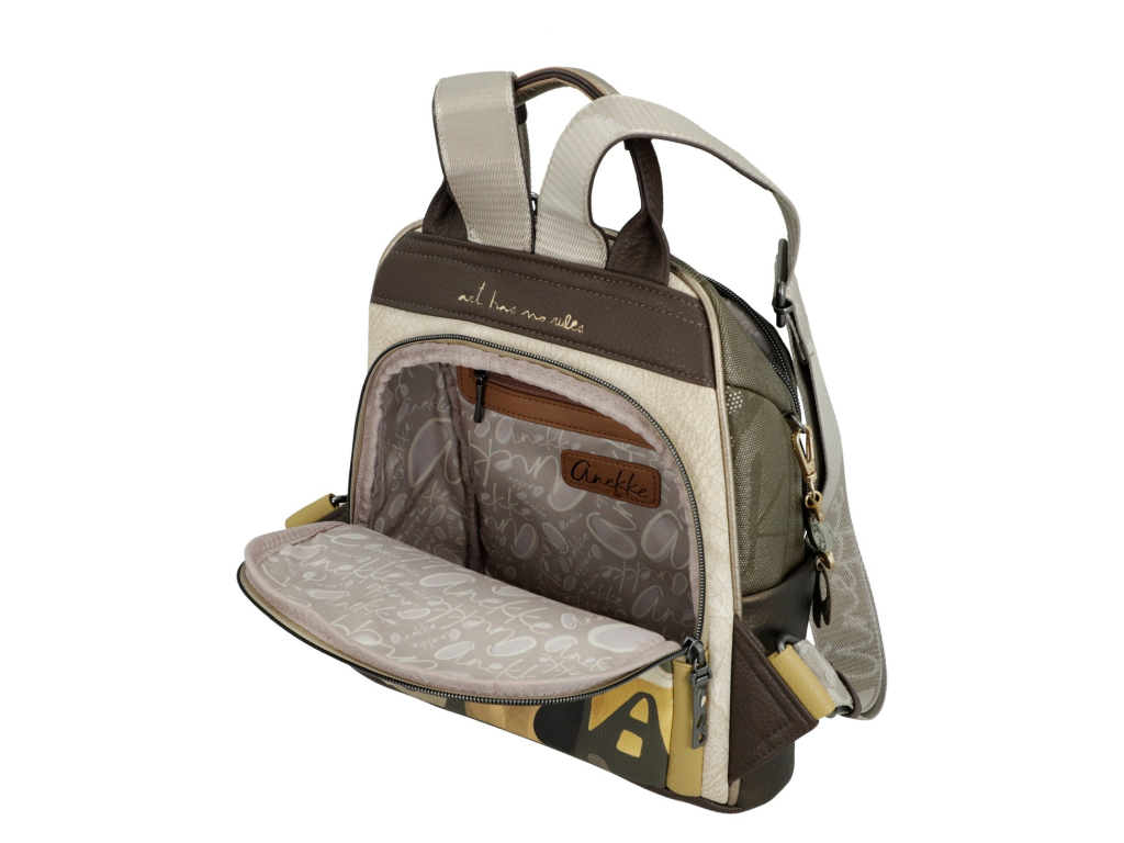 Stylový, pohodlný a ideální pro každý den – to je ležérní batoh Anekke Muse. Dominantní zelená barva mu dodává svěží a moderní vzhled, zatímco multibarevná zadní strana přináší hravost a originalitu typickou pro kolekci Muse. Přední béžová kapsa celý design krásně zjemňuje a dotváří harmonický celek.