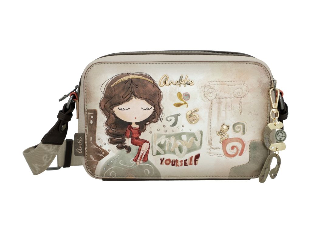 Stylová crossbody kabelka Anekke Muse v elegantních odstínech béžové až šedé přináší dokonalé spojení ženskosti, originality a španělského šarmu. Ideální doplněk pro každodenní nošení i výjimečné příležitosti.