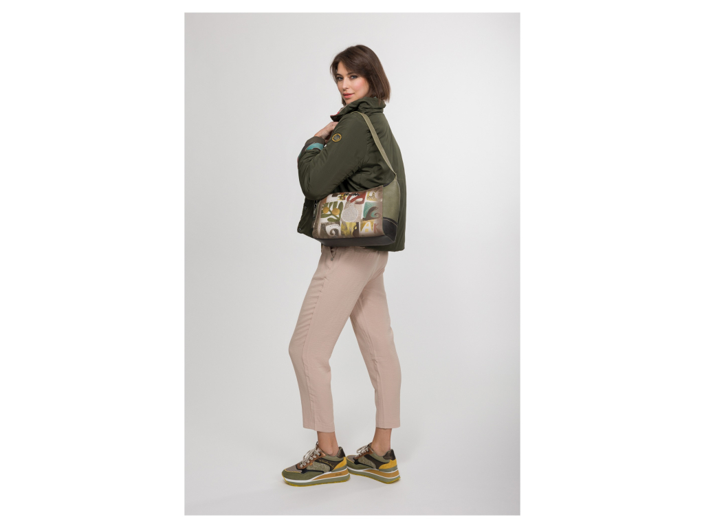 Stylová, praktická a originální – taková je kabelka Anekke z kolekce Amphora. Přední část kabelky zdobí jemný multibarevný motiv, který jí dodává hravý a umělecký vzhled, zatímco kombinace zelených a hnědých tónů zajišťuje nadčasovou eleganci a snadnou kombinovatelnost s outfity.