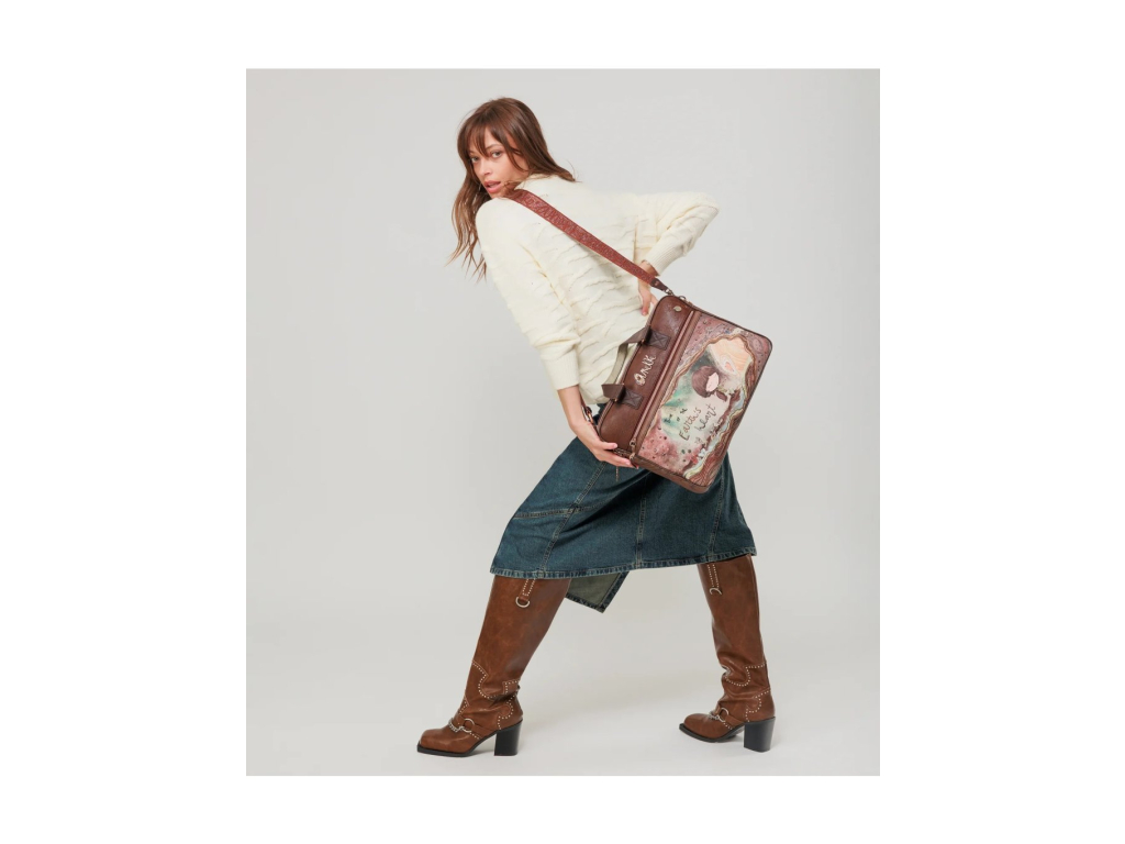 Tašku lze díky "kapse" na zadní straně nasadit na držadlo kufru pro pohodlné cestování.Nechybí ikonický přívěsek Anekke. Baleno v praktickém dustbagu.