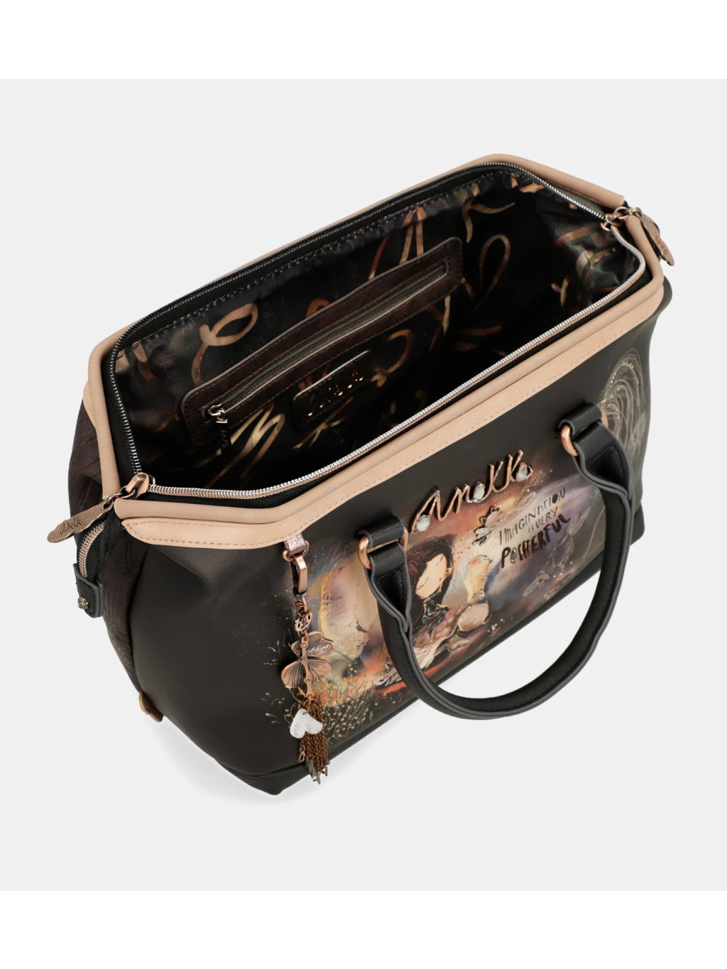 Vstupte do světa fantazie a elegance s nádhernou a pohádkovou vintage kabelkou Anekke Dreamverse. Tato okouzlující kabelka vás zavede do snového světa okouzlující Anekke, kde se každý detail stává součástí kouzelného příběhu. Elegantní kabelka do ruky, která spojuje klasický vintage styl s moderní praktičností. Je pečlivě a s láskou vyrobena z kvalitních materiálů a vyznačuje se jedinečným designem, který vás okouzlí a vtáhne do kouzelného světa na první pohled. Prostorný interiér a promyšlené uspořádání zajišťují, že budete mít vždy vše potřebné po ruce, zatímco jemné zdobení a detailní zpracování dodávají kabelce nezaměnitelný charakter.